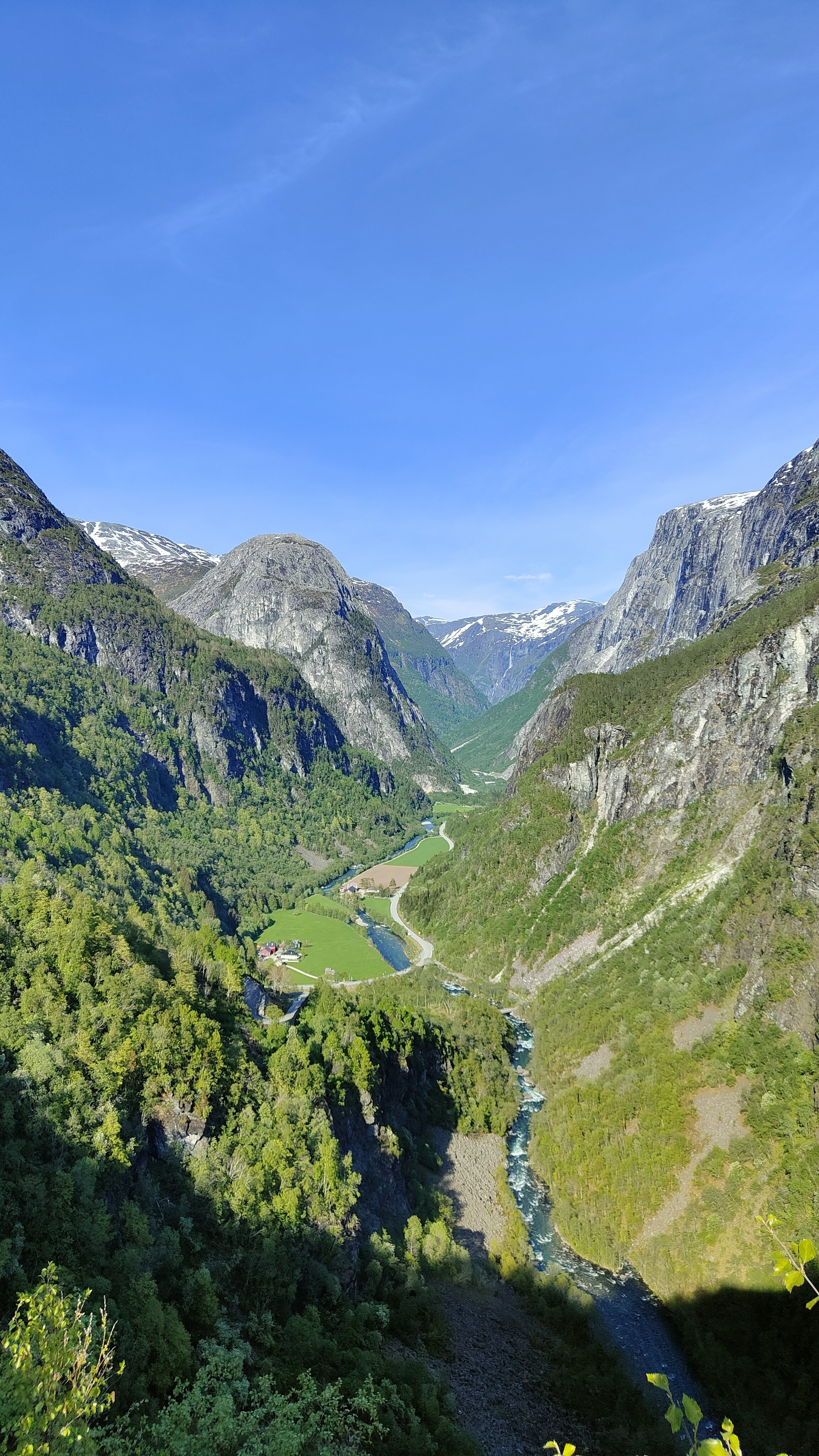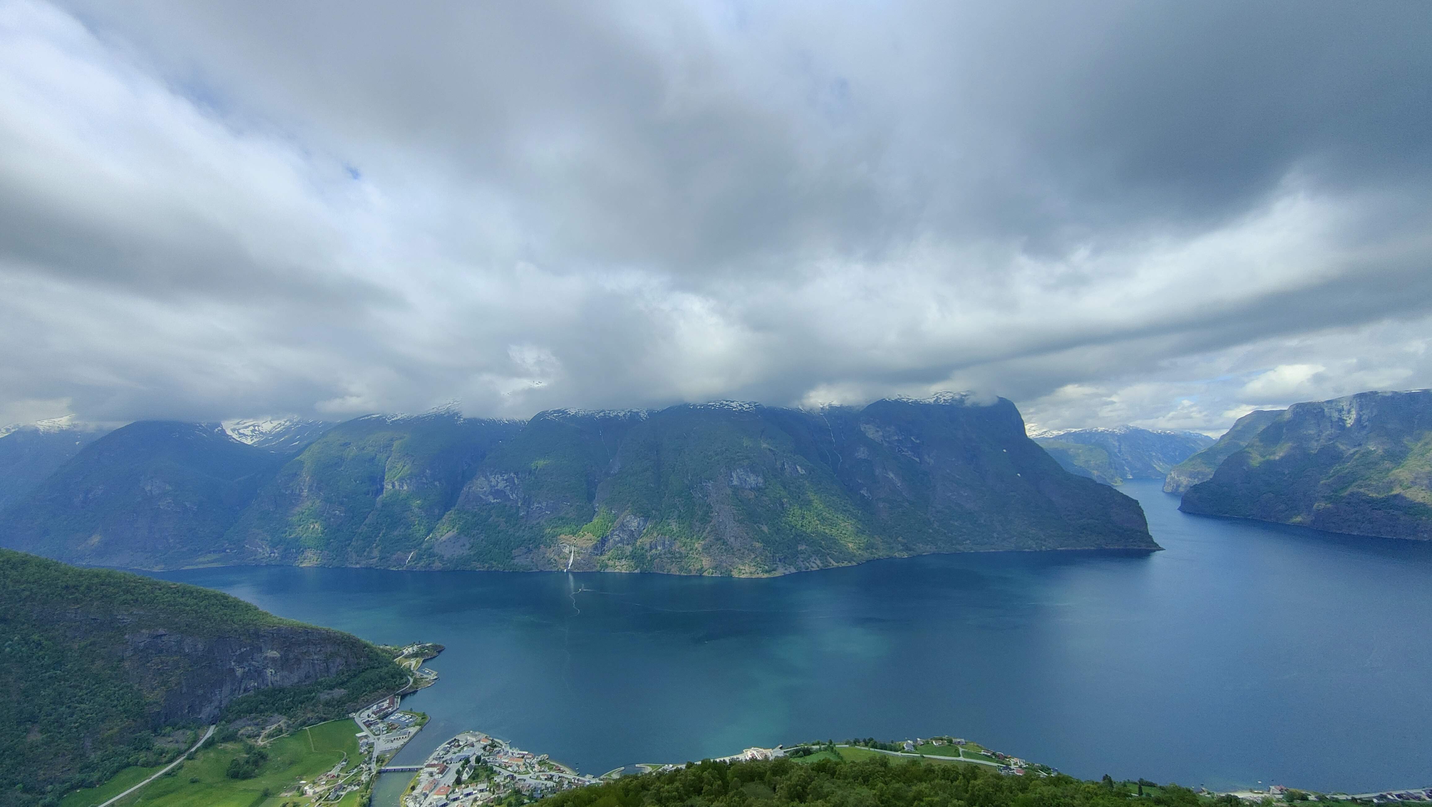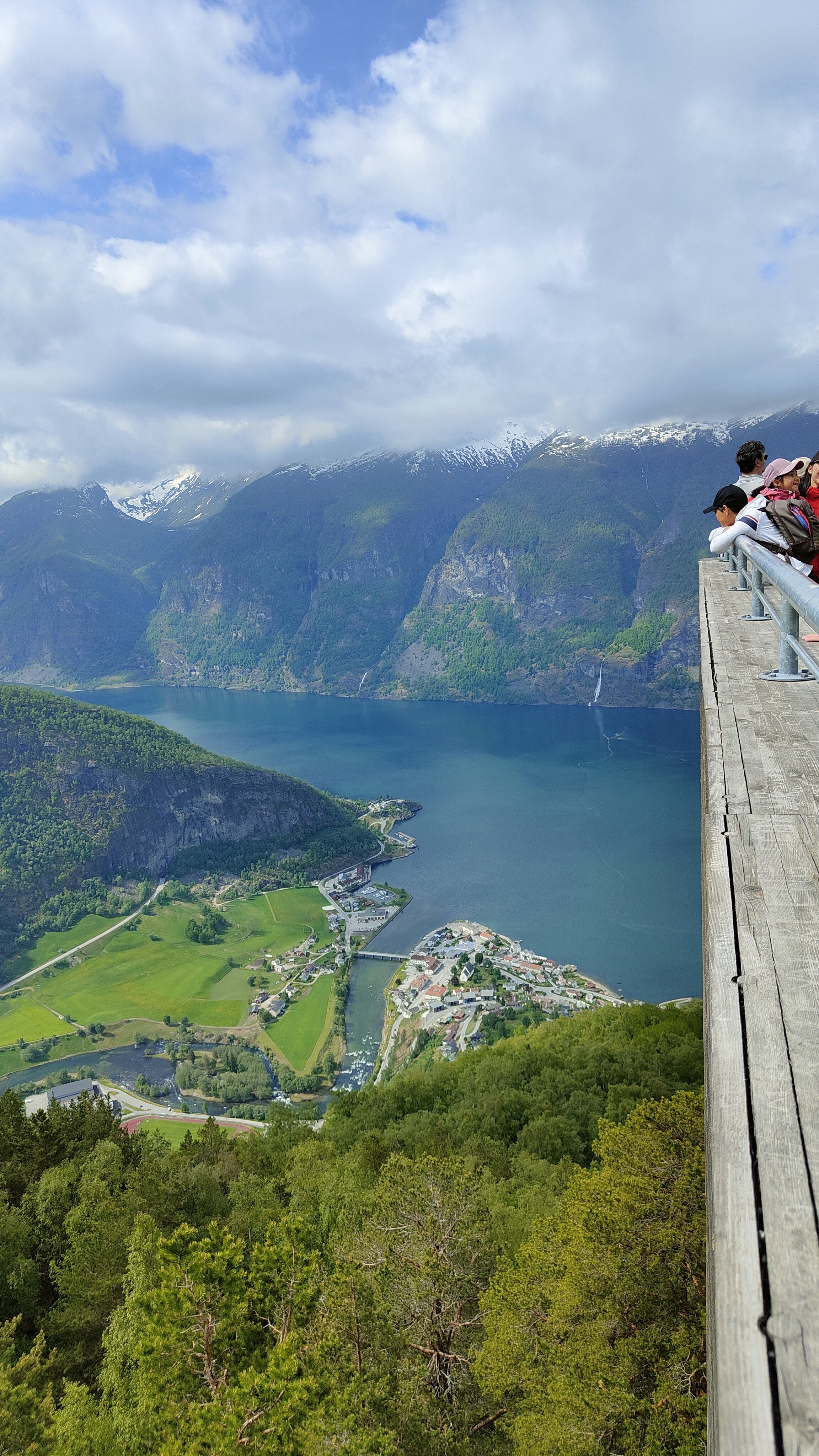 Le point de vue est situé à une altitude de 650 mètres et offre une magnifique vue panoramique sur l’Aurlandsfjord. Il s’agit d’une longue plateforme d’observation qui s’avance de 30 mètres au-delà du flanc de la montagne. Son extrémité est en verre mais, même si l’on a le vertige, on profite du paysage.