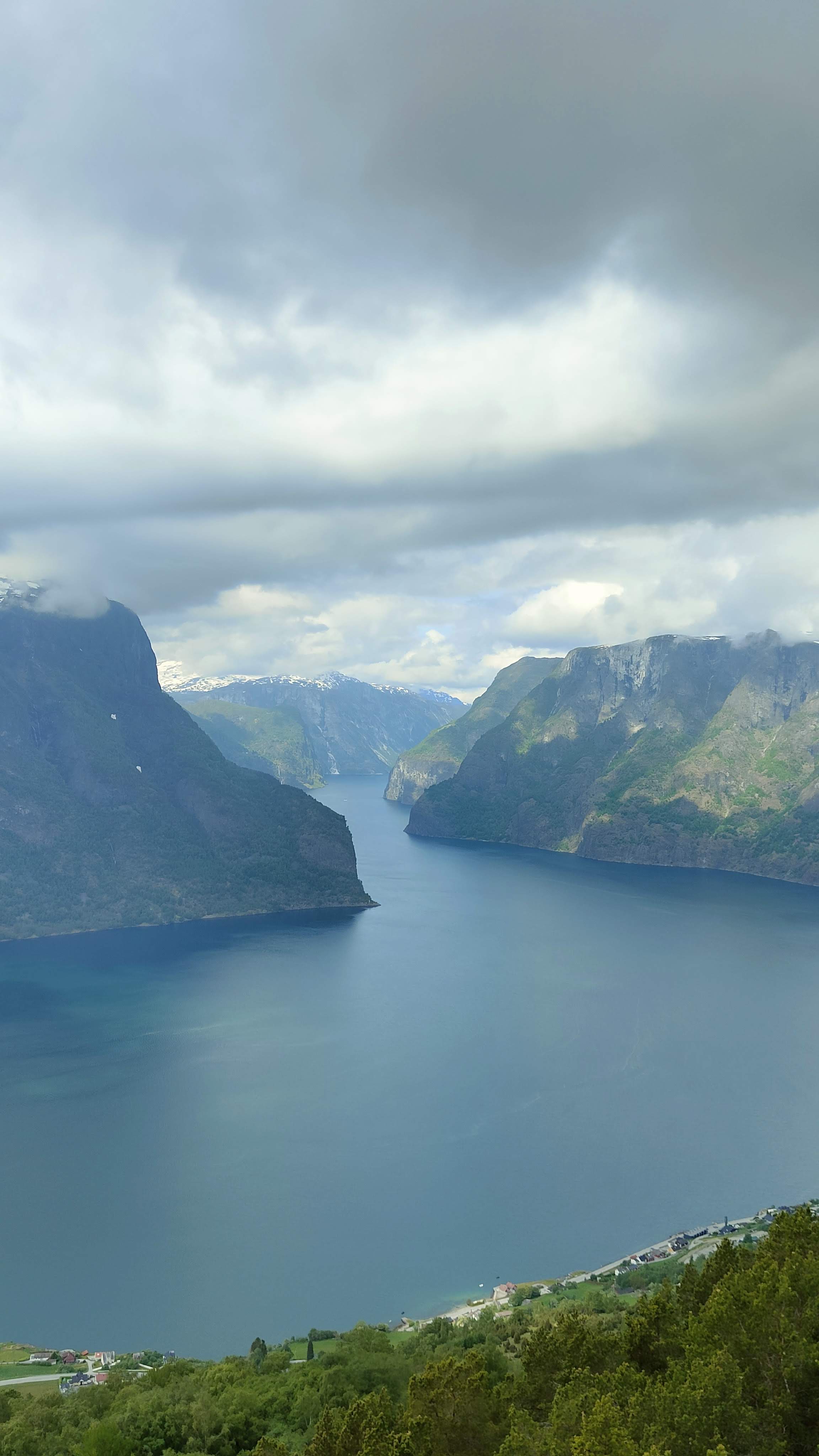 Puis nous arrivons à l’embouchure du Nærøyfjord. Nous nous y engouffrons et le vent se calme, ouf !