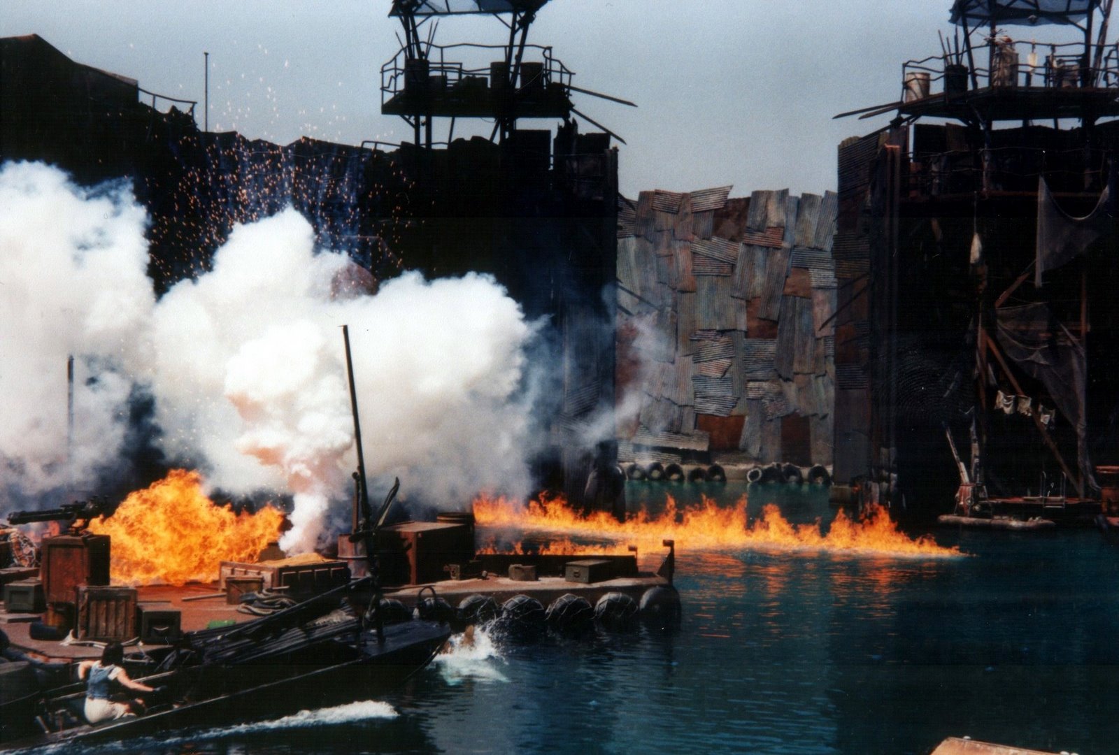 Une partie a brûlé récemment d’ailleurs (King Kong je crois). Quelques attractions ont survécu car il semble que Jurassic Park et même le spectacle Waterworld sont toujours là.