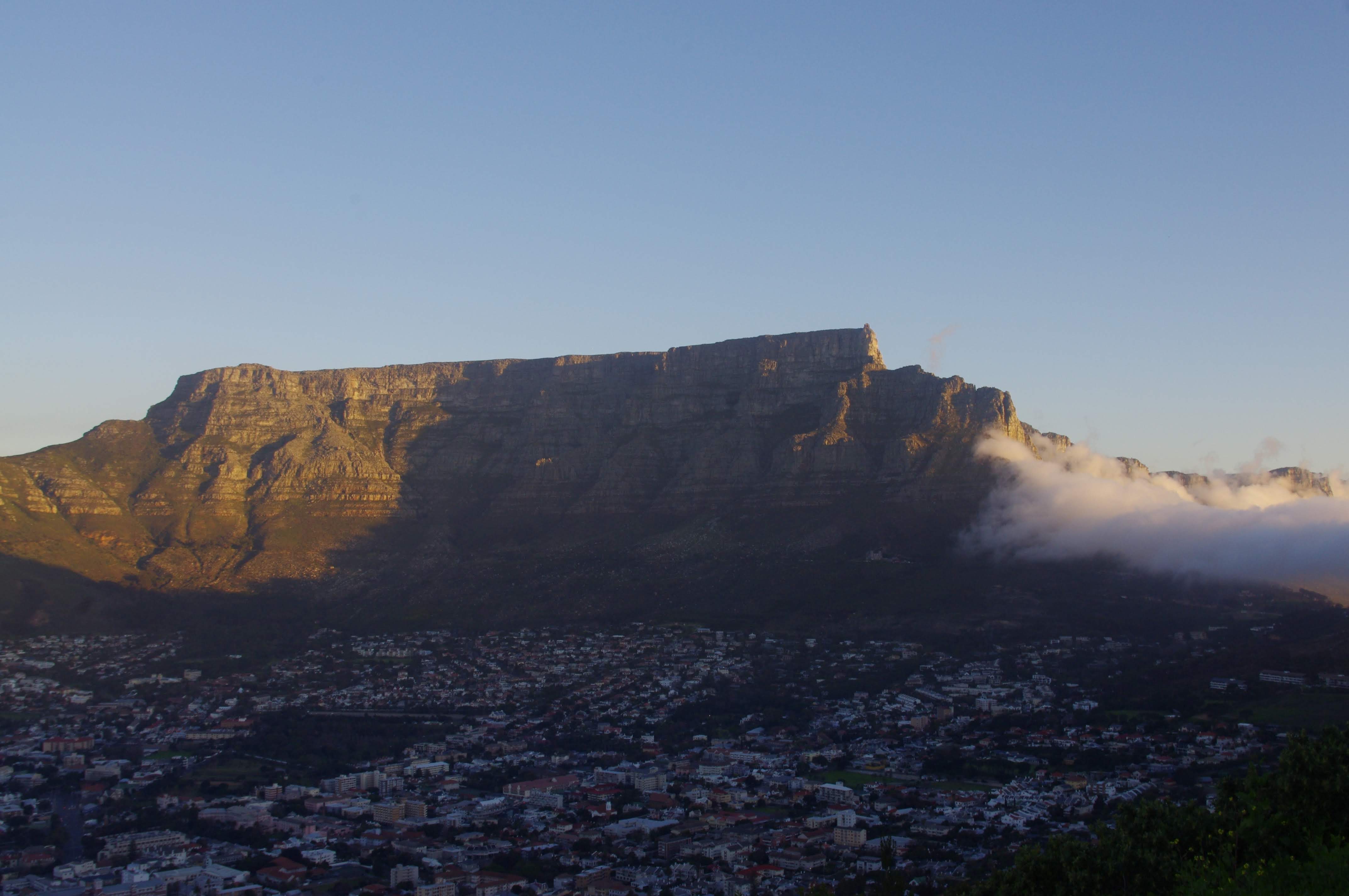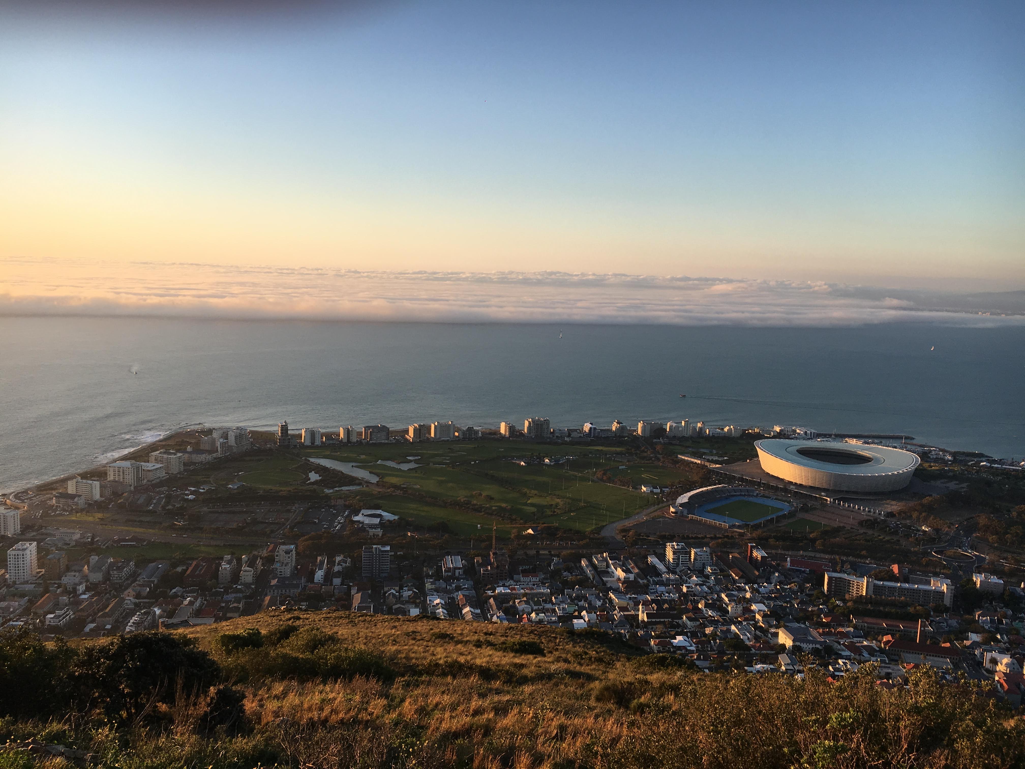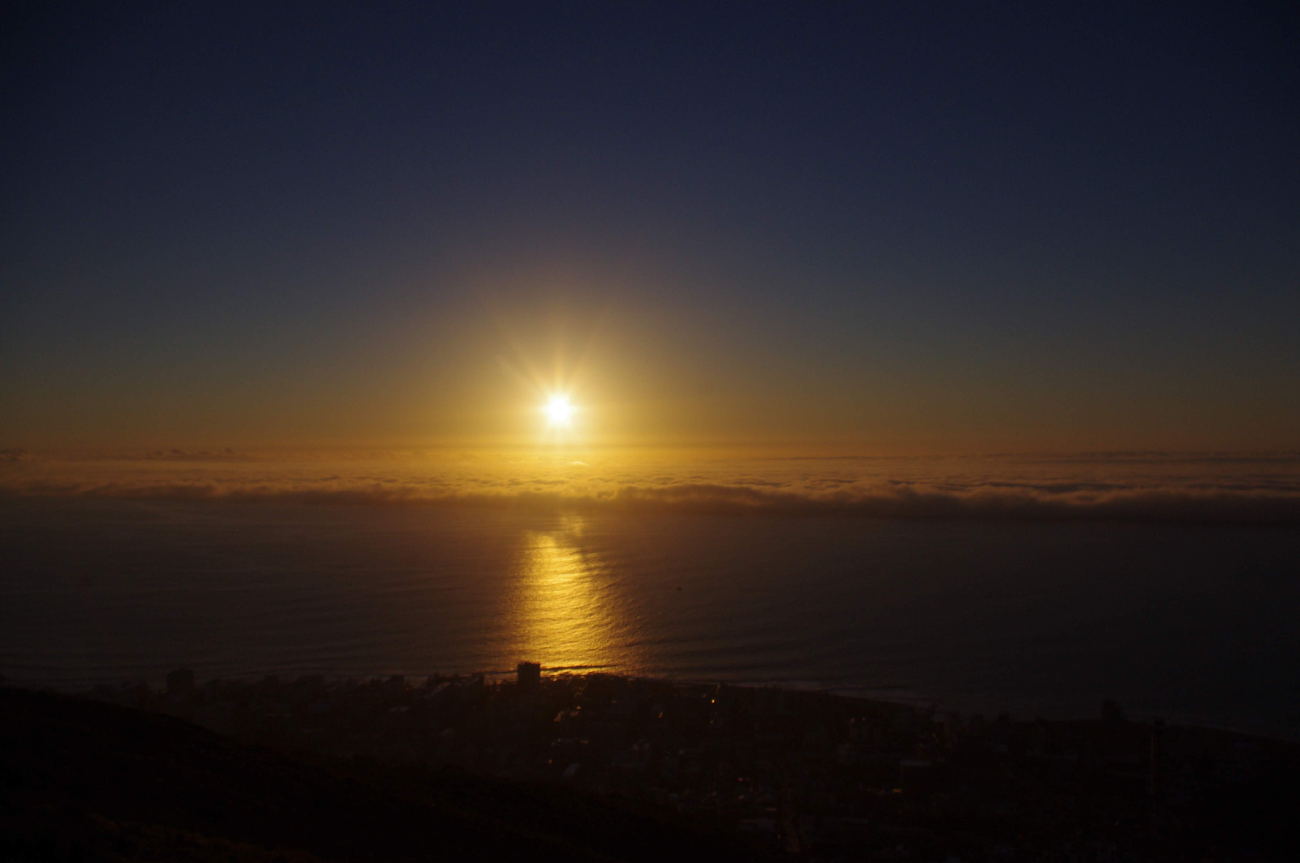 On a une magnifique vue sur Le Cap avec un coucher de soleil splendide sur la mer et une mer de nuages qui arrive (important pour la suite…).