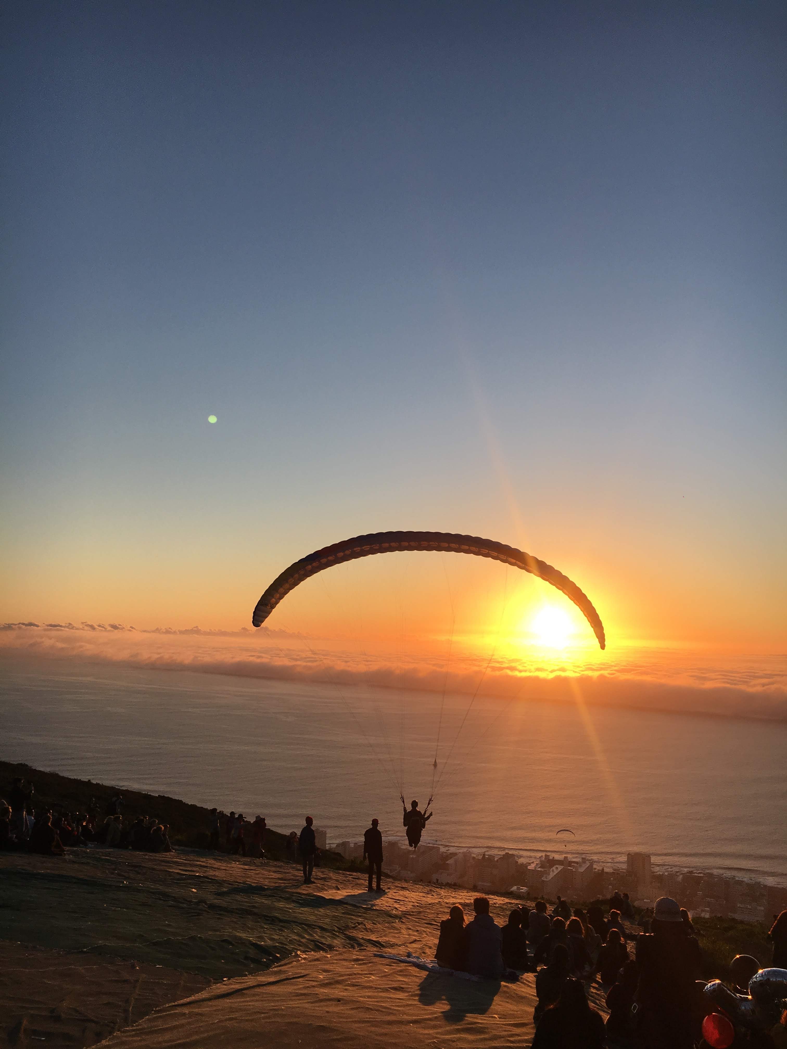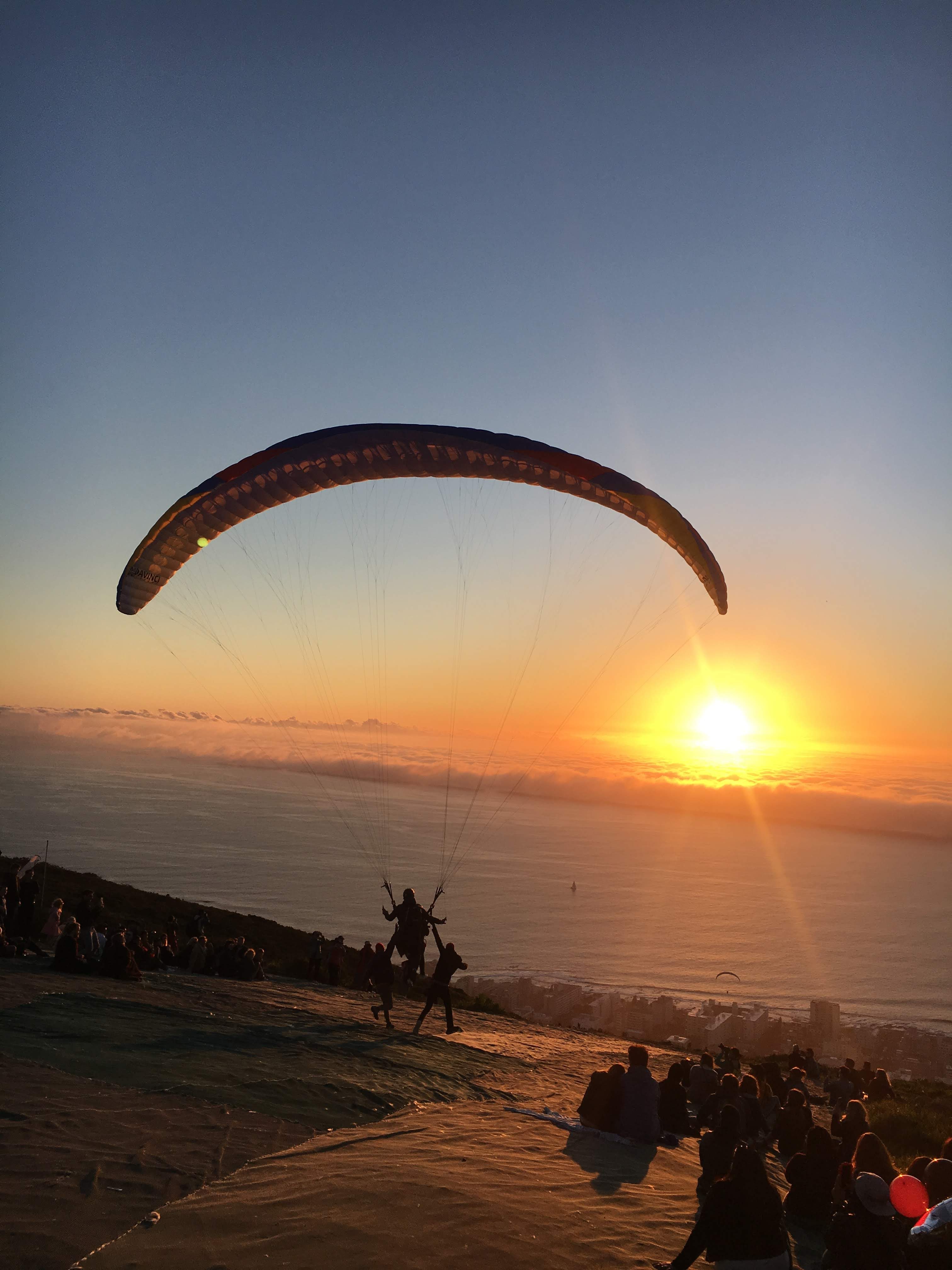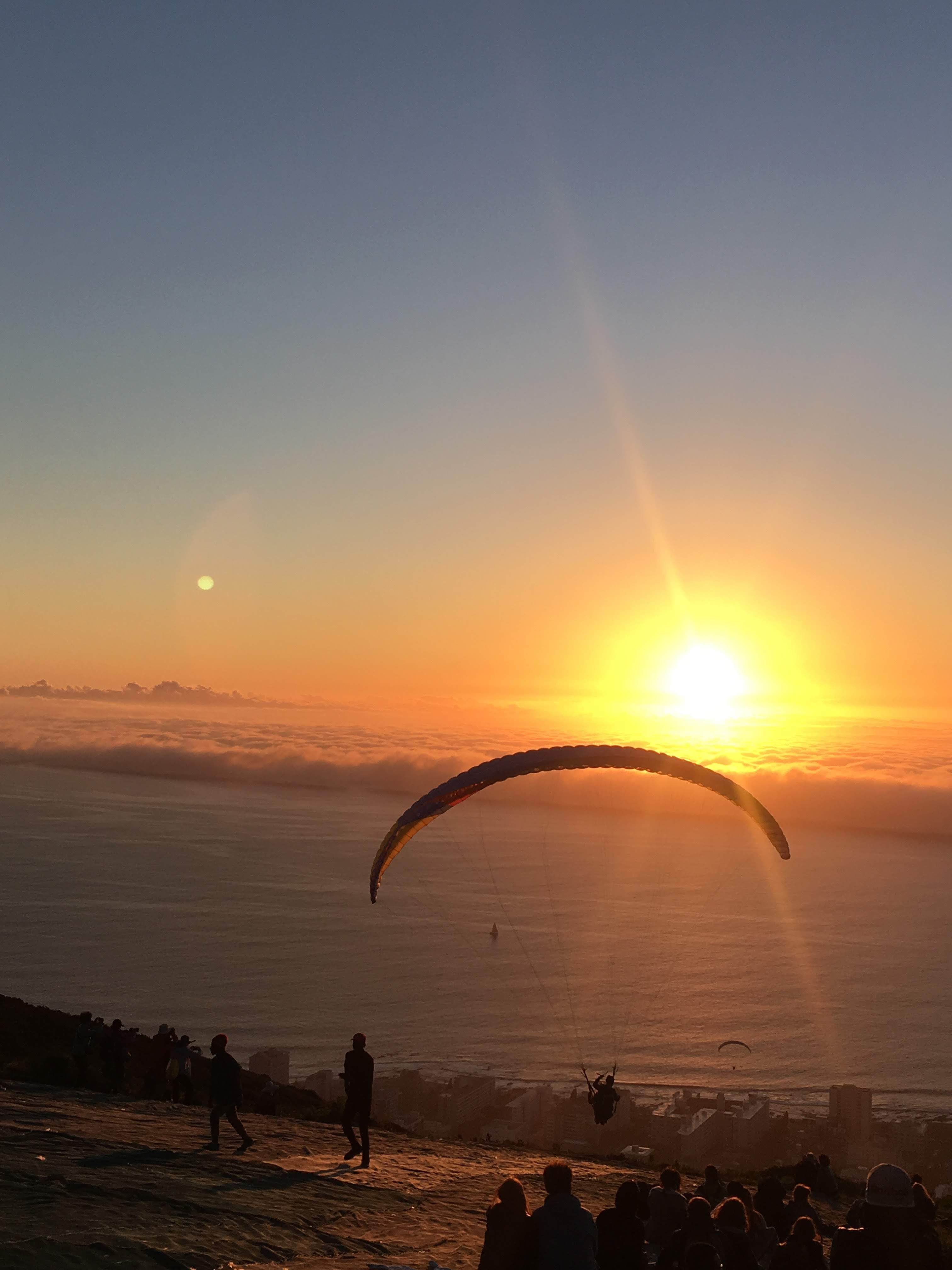 On a une magnifique vue sur Le Cap avec un coucher de soleil splendide sur la mer et une mer de nuages qui arrive (important pour la suite…).