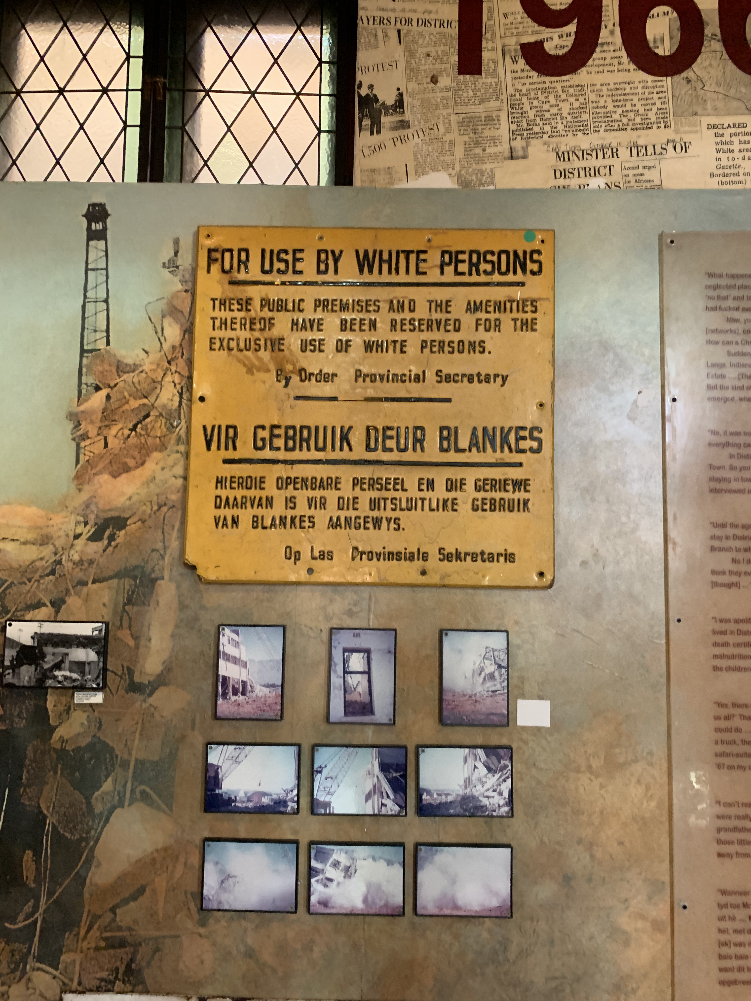 Le musée présentent de nombreux témoignages de l’histoire du District 6. Cependant, le reproche que l’on peut lui faire est qu’il n’est pas très « ludique ». Même en étant intéressé par cette histoire, on la découvre au travers d’articles de journaux, documents, etc.