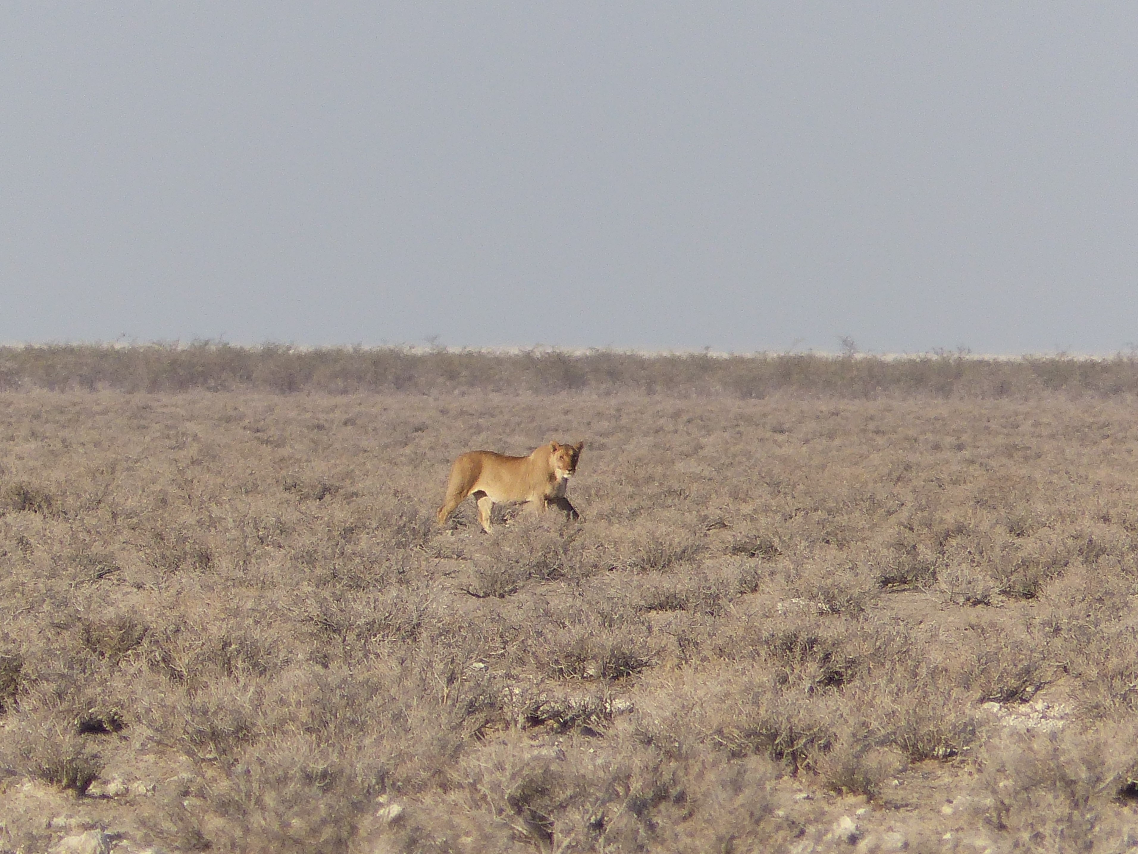 Etosha est un immense parc naturel autour d’un lac asséché, le Pan. C’est un moment de notre séjour que nous attendons avec impatience car c’est ici que nous sommes censés rencontrer nos premiers félins, éléphants, rhinocéros, etc.