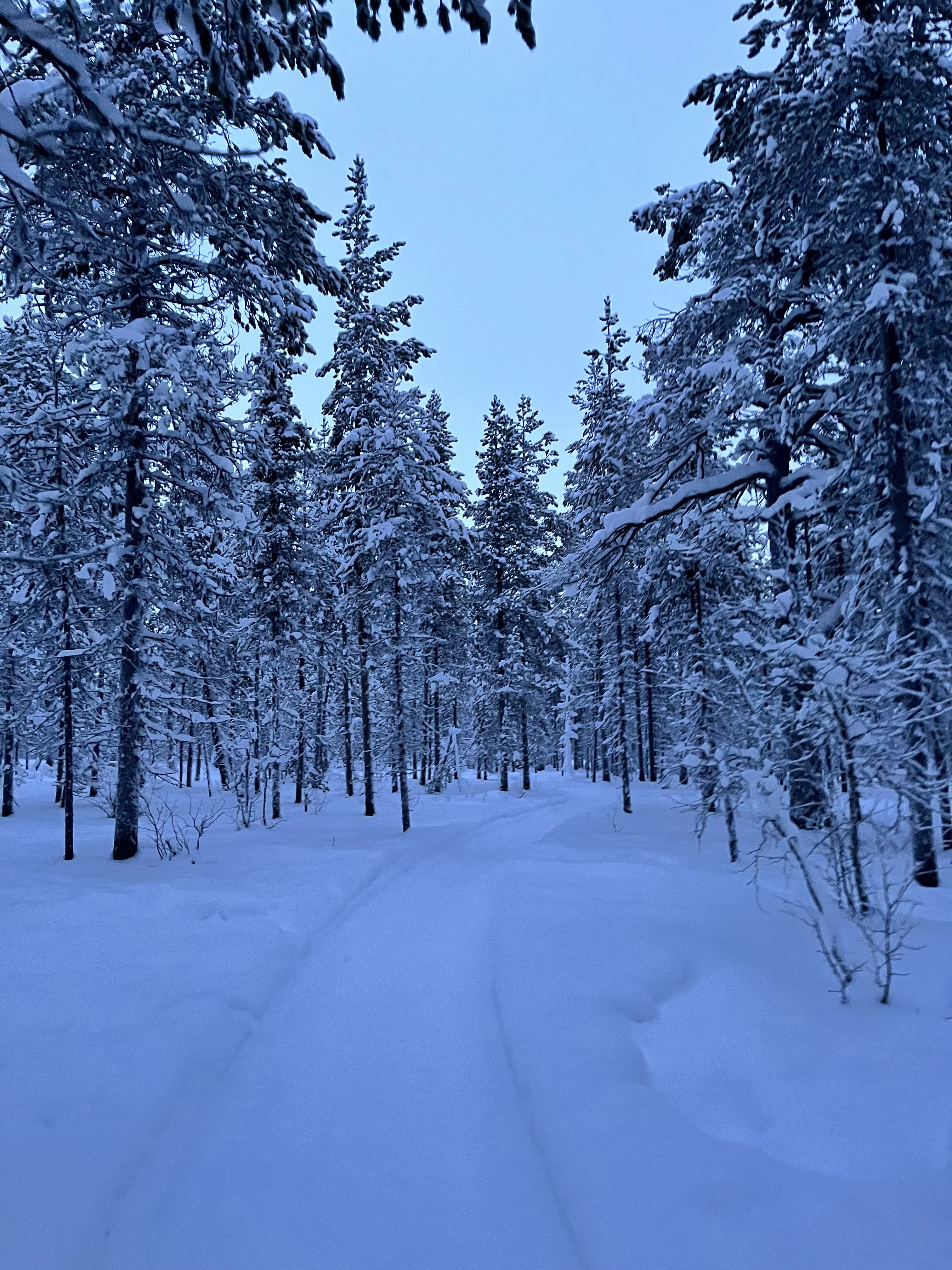 Pas d’animaux sauvages à craindre : les ours hibernes, les loups ne sont pas dans ce coin et les rennes ont peur des humains (mais pas des motoneige !).