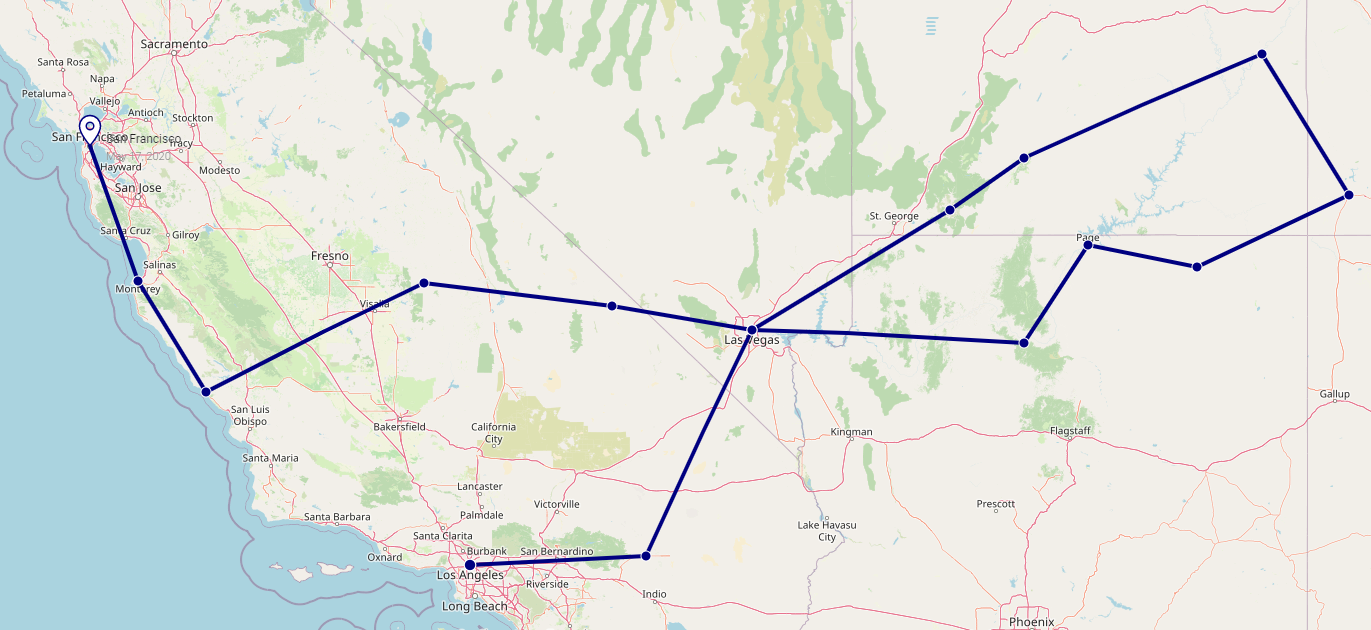 Il est assez classique. Nous partirons de Los Angeles et ferons une boucle jusqu’à San Francisco.