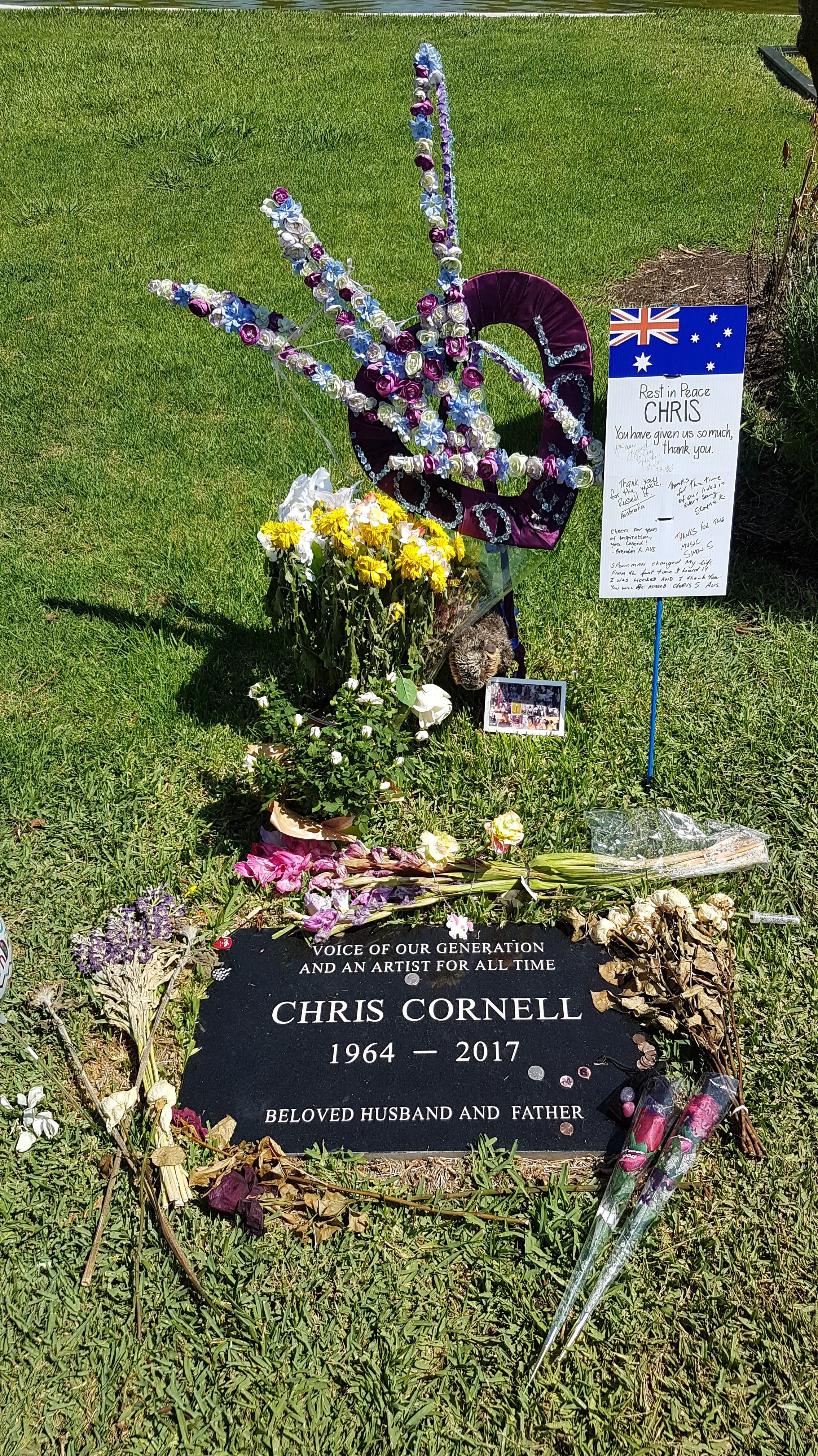 Joe Dassin notamment, mais notre but est plutôt la tombe de Chris Cornell, décédé l’année précédente.