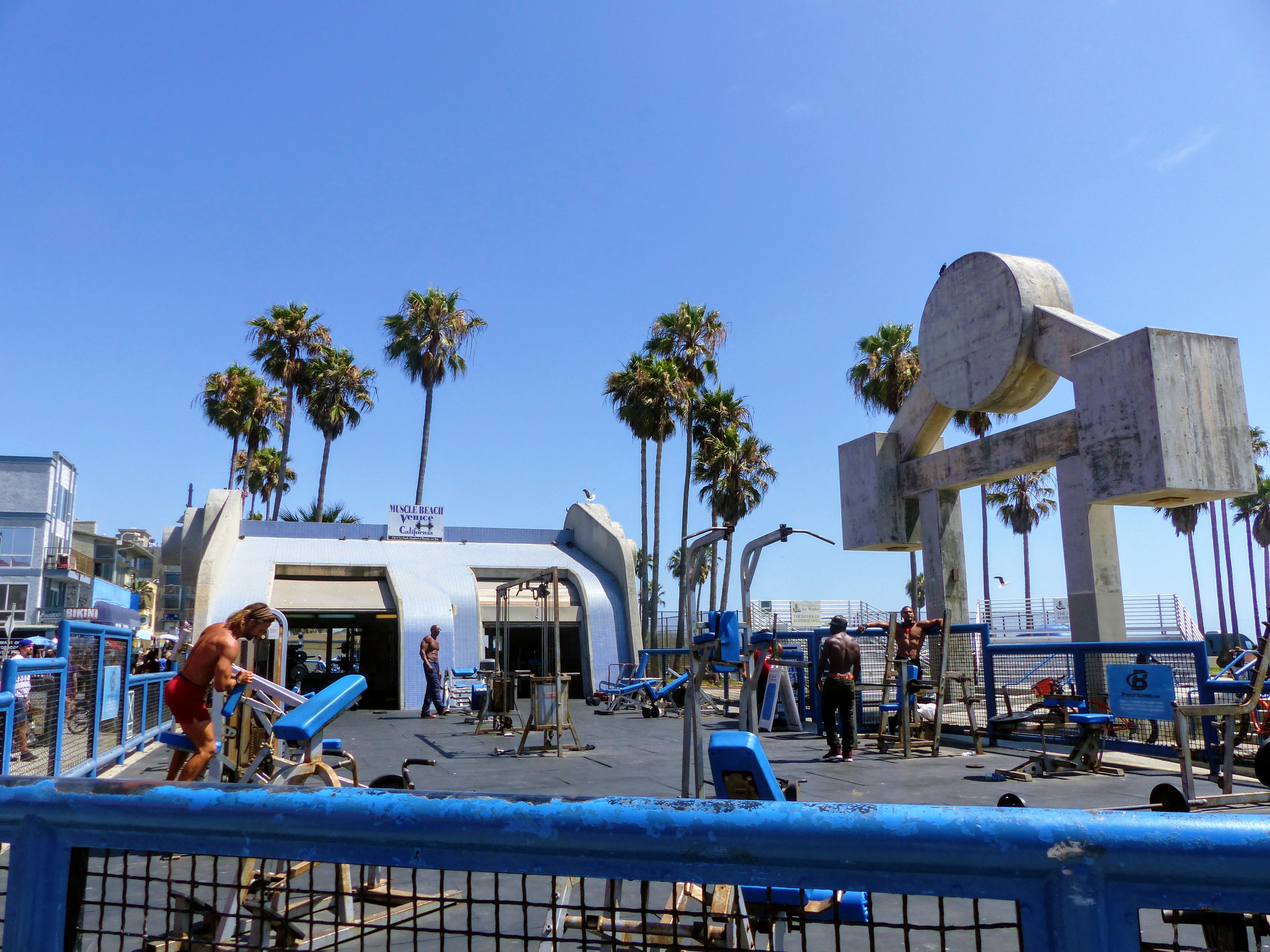 Très vite nous arrivons sur la fameuse Muscle Beach ou quelques culturistes pratiquent leur sport.