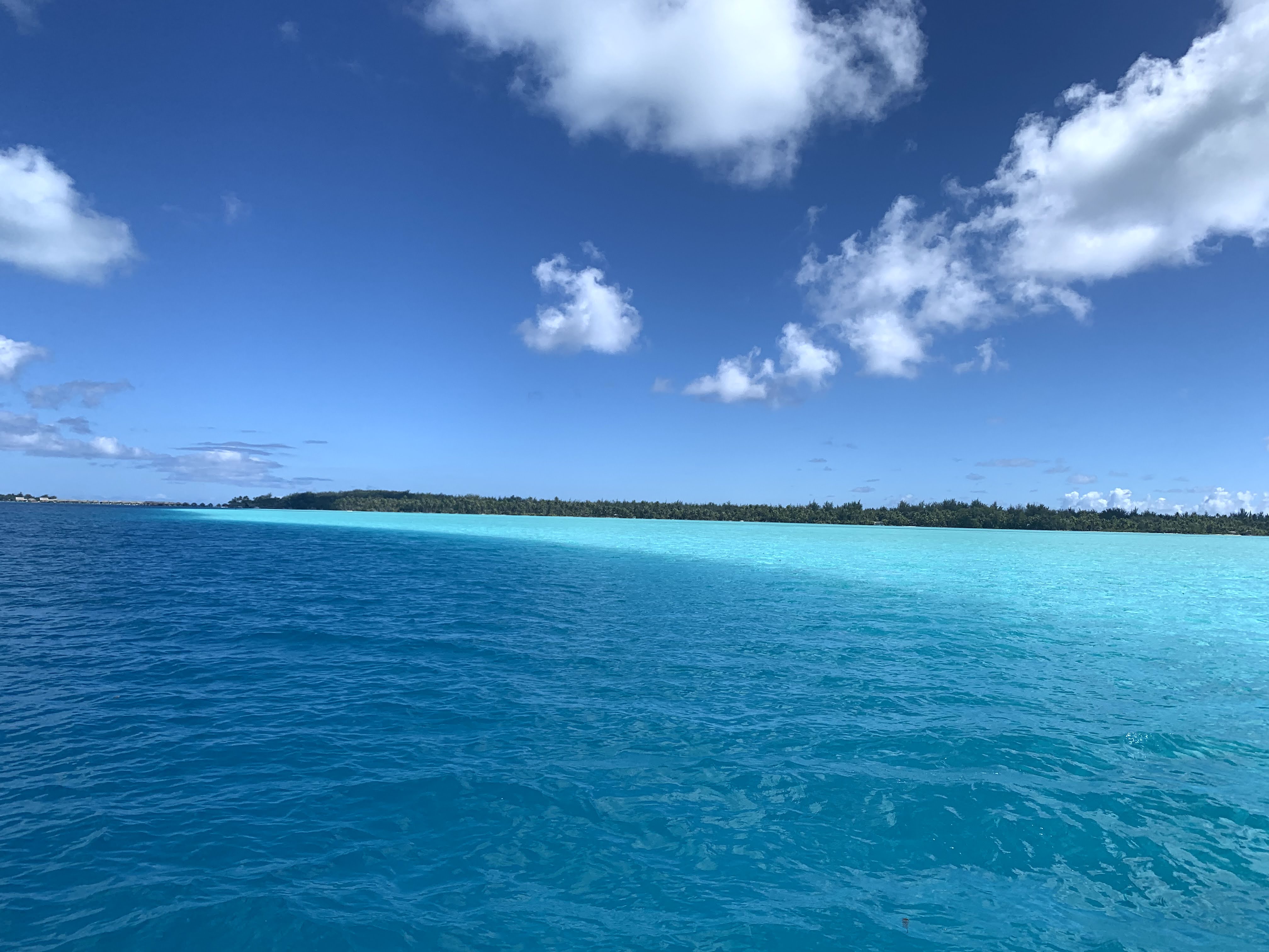 Très vite, nous arrivons dans des fonds moins profonds et naviguons à pleine vitesse sur les eaux turquoises. On ne se lassera jamais de ça !